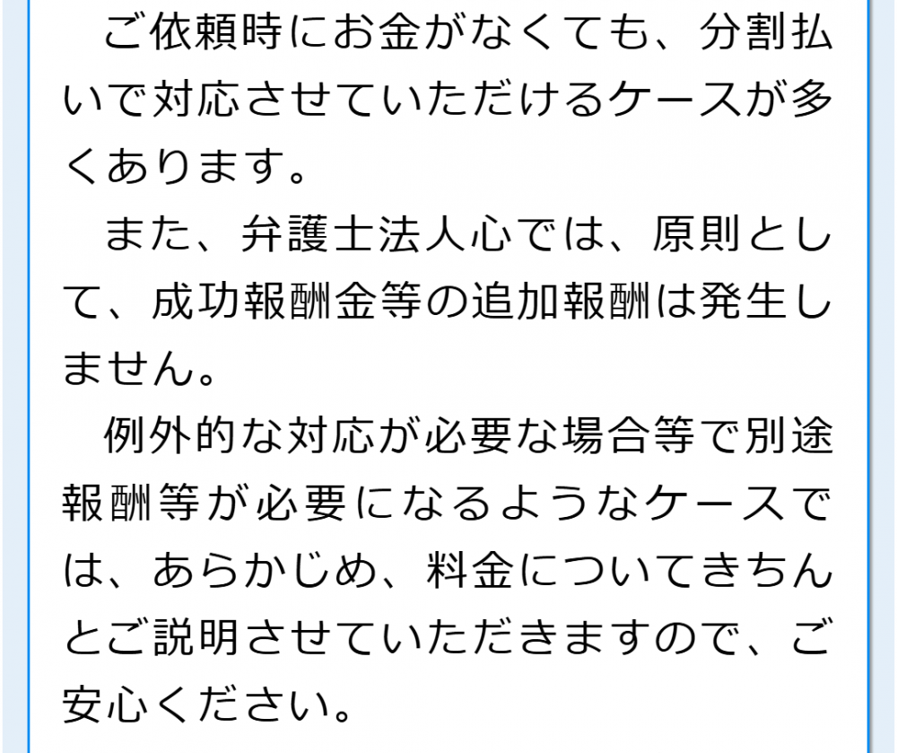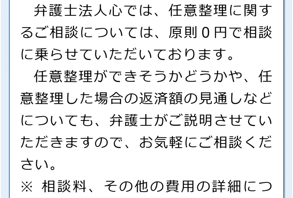 借金に関するご相談は原則として無料でしていただくことができますので、見通しを聞いてからどうするか決めたいという方にもお気軽にご利用いただけます。